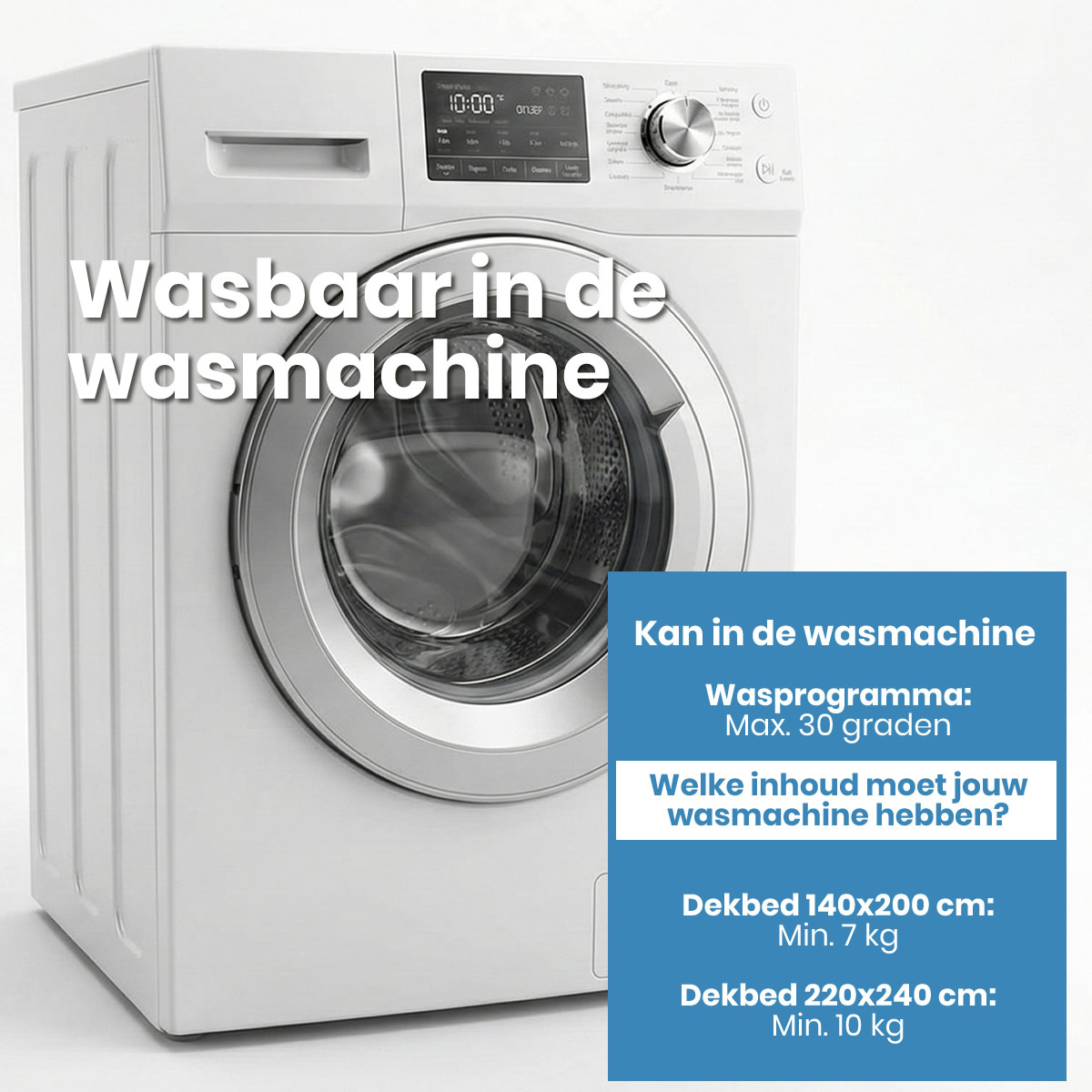 - Drogen: Niet geschikt voor de droger; laat het dekbed aan de lucht drogen voor behoud van de vezelstructuur.