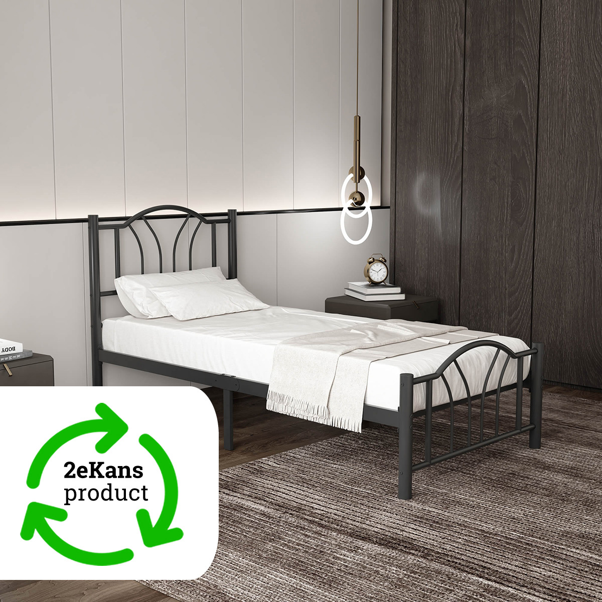 Ervaar het ultieme slaapcomfort met het AirSleeperz® metalen beddenframe Esmee. Met zijn robuuste constructie en stijlvolle design biedt dit bedframe de perfecte combinatie van duurzaamheid en elegantie voor uw slaapkamer. Het beddenframe Esmee is vervaardigd uit extra dik gepoedercoat metaal van 1,5 mm dik, waardoor het niet alleen stevig en stabiel is, maar ook langdurige ondersteuning biedt voor een goede nachtrust. Met een afmeting van 90x200 cm past dit eenpersoons model perfect in elke slaapkamer. De AirSleeperz® Esmee serie combineert elegant klassiek met modern.