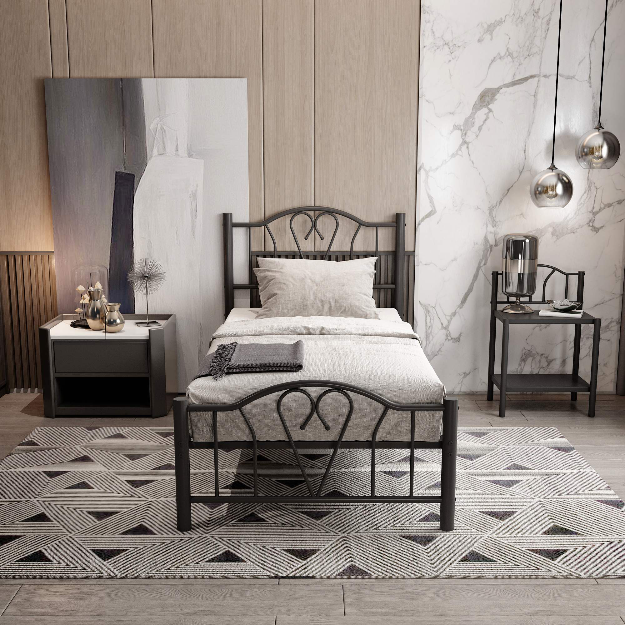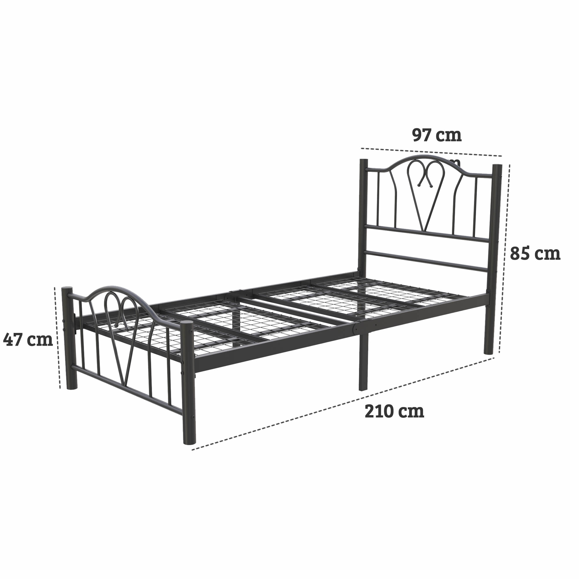 Het Eva eenpersoons metalen bed is een prachtig ontwerp van AirSleeperz®, dat topkwaliteit en klassieke elegantie combineert. Dit bed helpt u een esthetische sfeer te creëren door een klassieke touch toe te voegen aan uw kamer met zijn elegante zwarte kleur en sierlijke elementen.