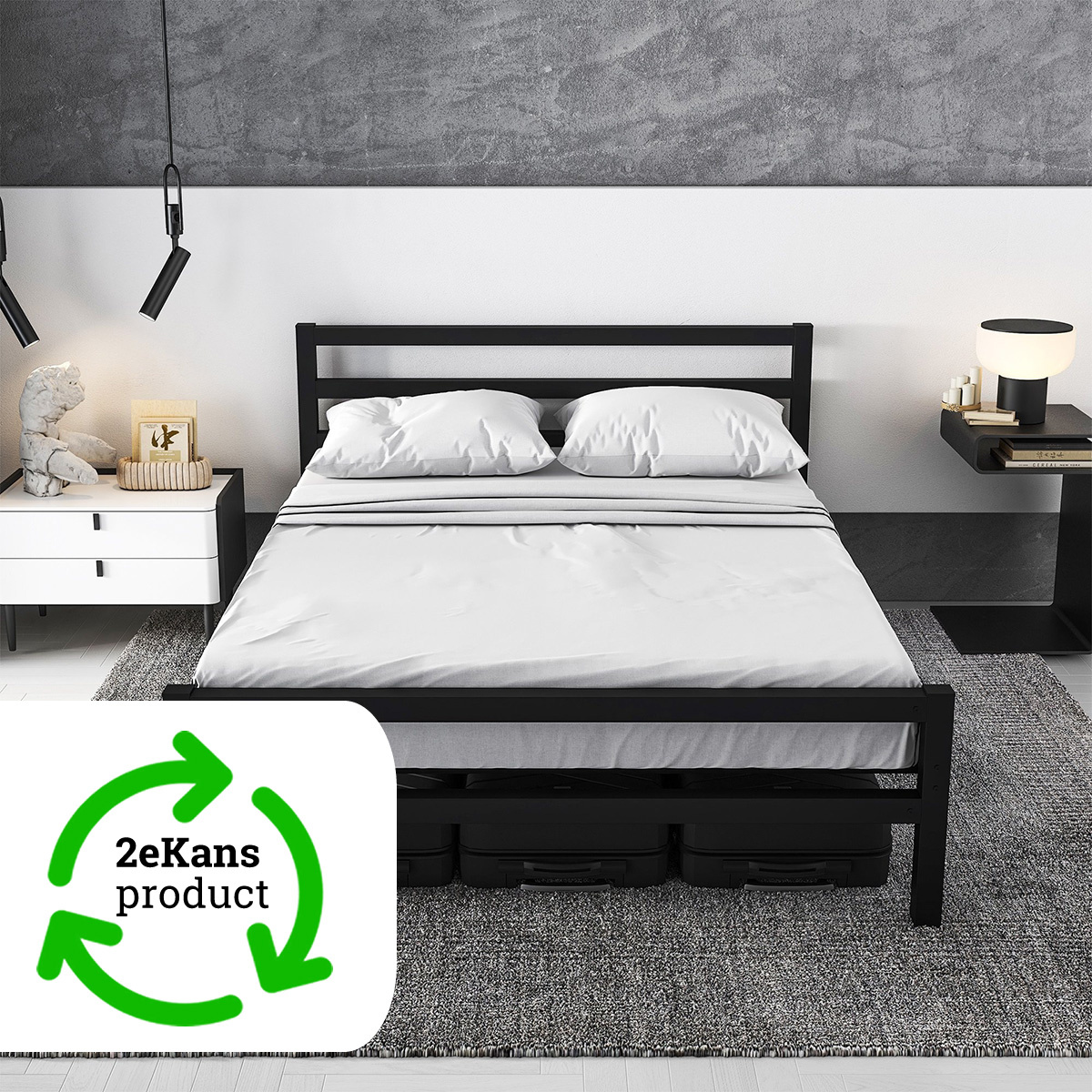 Ervaar het ultieme slaapcomfort met het AirSleeperz® metalen beddenframe Job. Met zijn robuuste constructie en stijlvolle design biedt dit bedframe de perfecte combinatie van duurzaamheid en elegantie voor uw slaapkamer. Het beddenframe Job is vervaardigd uit extra dik gepoedercoat metaal van 1,5 mm dik, waardoor het niet alleen stevig en stabiel is, maar ook langdurige ondersteuning biedt voor een goede nachtrust. Met een afmeting van 140x200 cm past dit tweepersoons model perfect in elke slaapkamer. De AirSleeperz® Job serie heeft een modern en strak design.